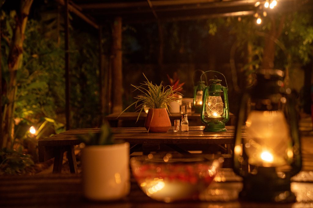We tried and kept the Zen vibe going on in the total indoor dining experience without hurting the ruggedness of the camp. You must have to stay for the night if you would like to experience the different sides of the indoor dining space which can be calming during the day and therapeutic during the night. Because of the meditative attributes, we call it “Zen Garden”.